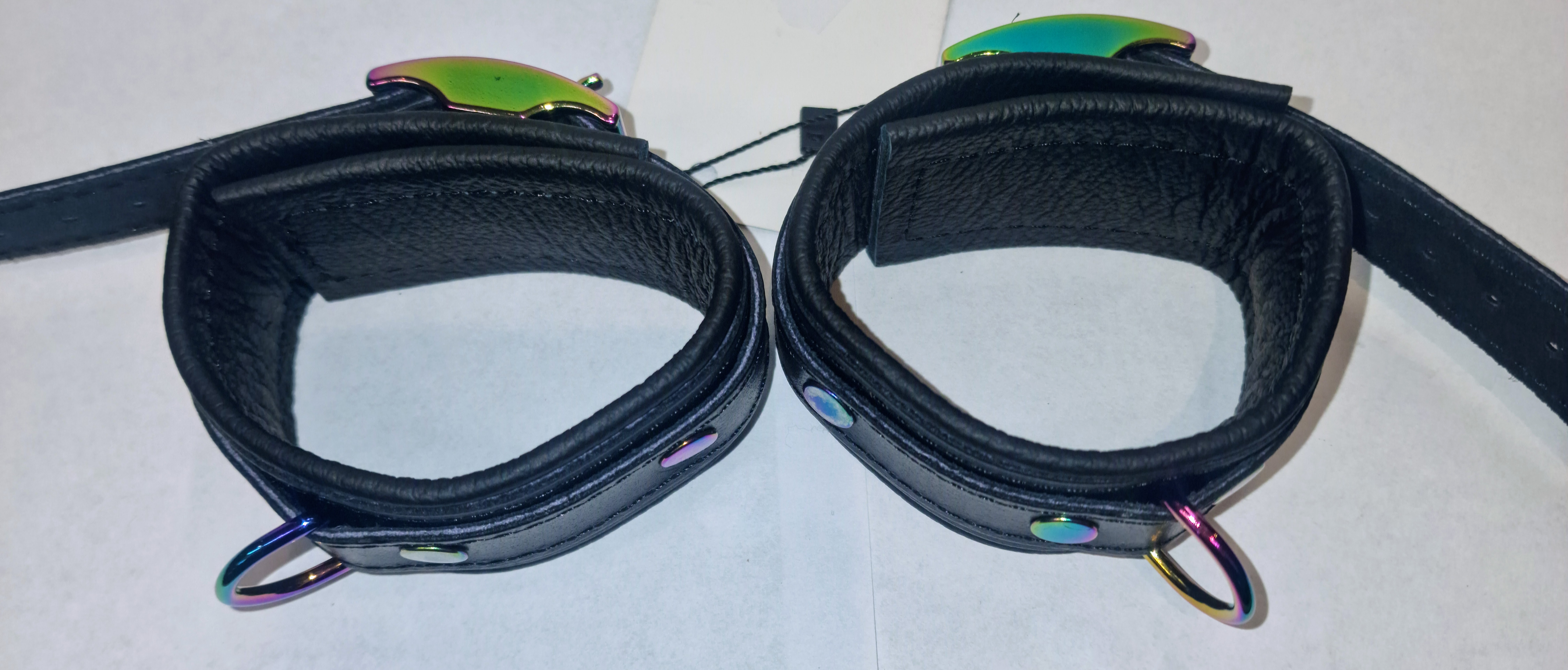 Diese einzigartige Serie besticht durch faszinierende Regenbogen-/Holo-Metallelemente, die jedes Detail zum Highlight machen. Die Fesseln sind aus besonders weichem Leder gefertigt, mit umgenähten Kanten für höchsten Tragekomfort und eine edle Optik.