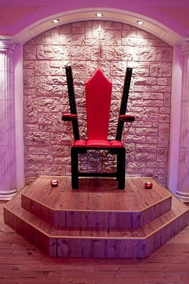 Barbereich: mit kleiner Küche (komplett eingerichtet), Sitzecke mit Klappsofa 180cm, Dominathron auf Podest, Spankbock, Käfig, Spinnennetz, Spreizstuhl, Soundanlage und Fernsehen