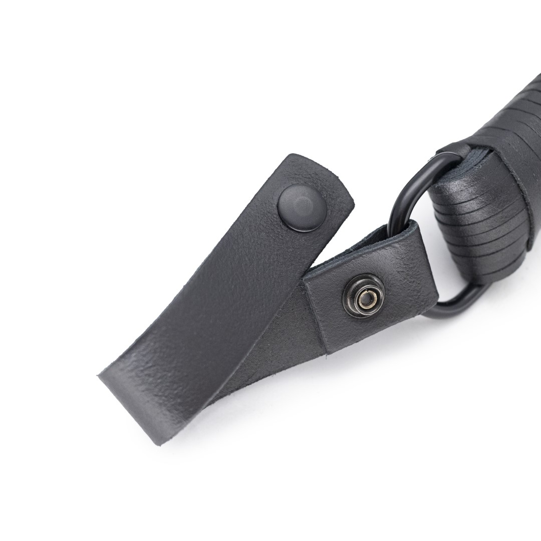 Unser Lederflogger ist mit einem abknöpfbaren Griff ausgestattet, der an fast allen Ringen oder Hosenschlaufen befestigt werden kann.
