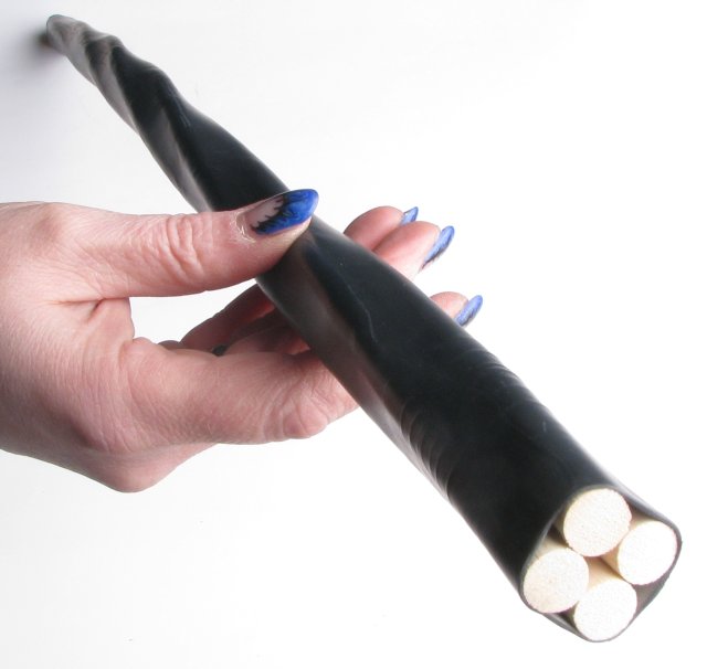 Drei eng gebündelte Rohrstöcke, mit flexiblem Gummi überzogen, entfalten bei jedem Schlag ein unverwechselbares Spiel aus Präzision und Intensität.