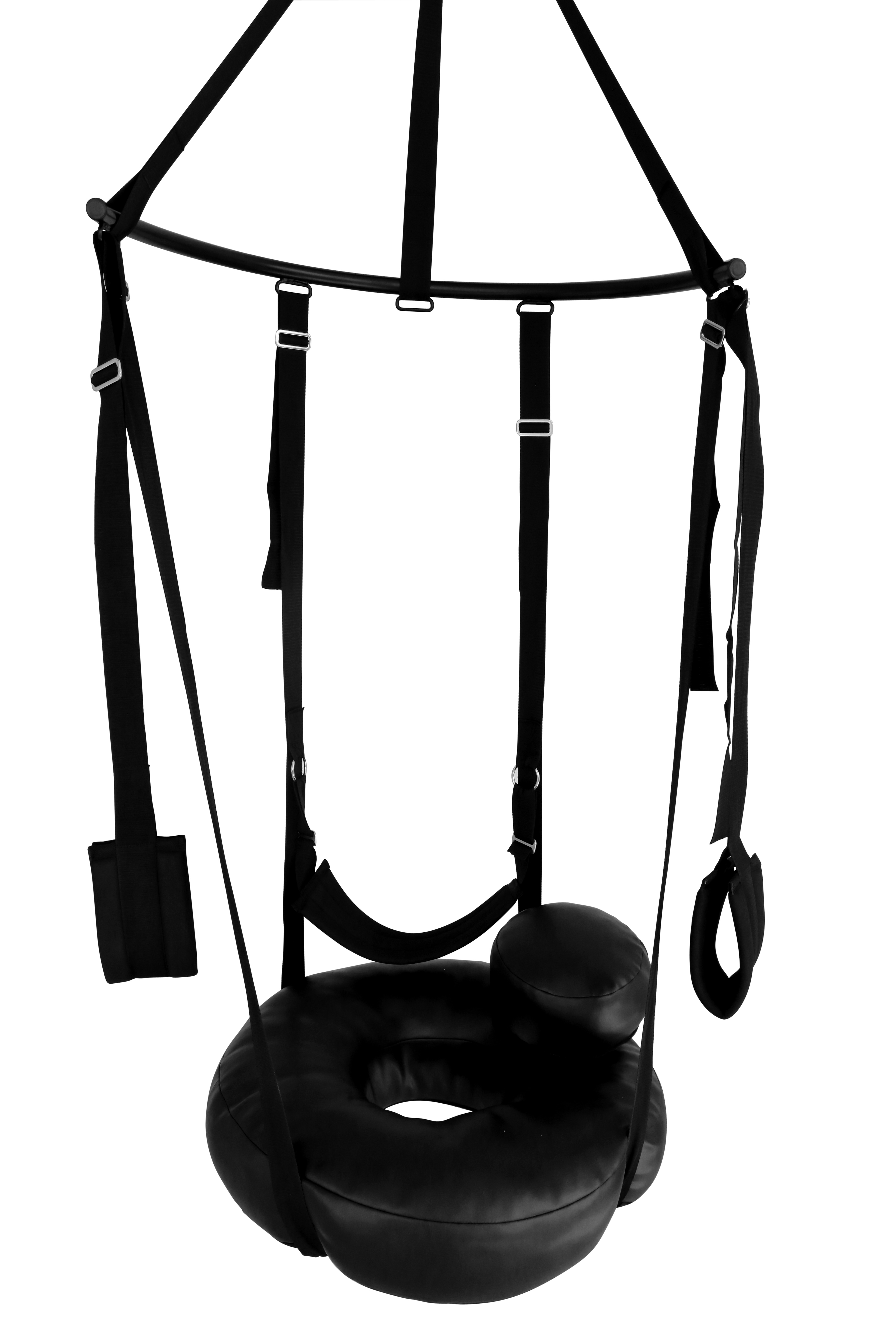 The 4 adjustable belts which hold the Sex DONUT are safely attached to the semi-circular metal bar,