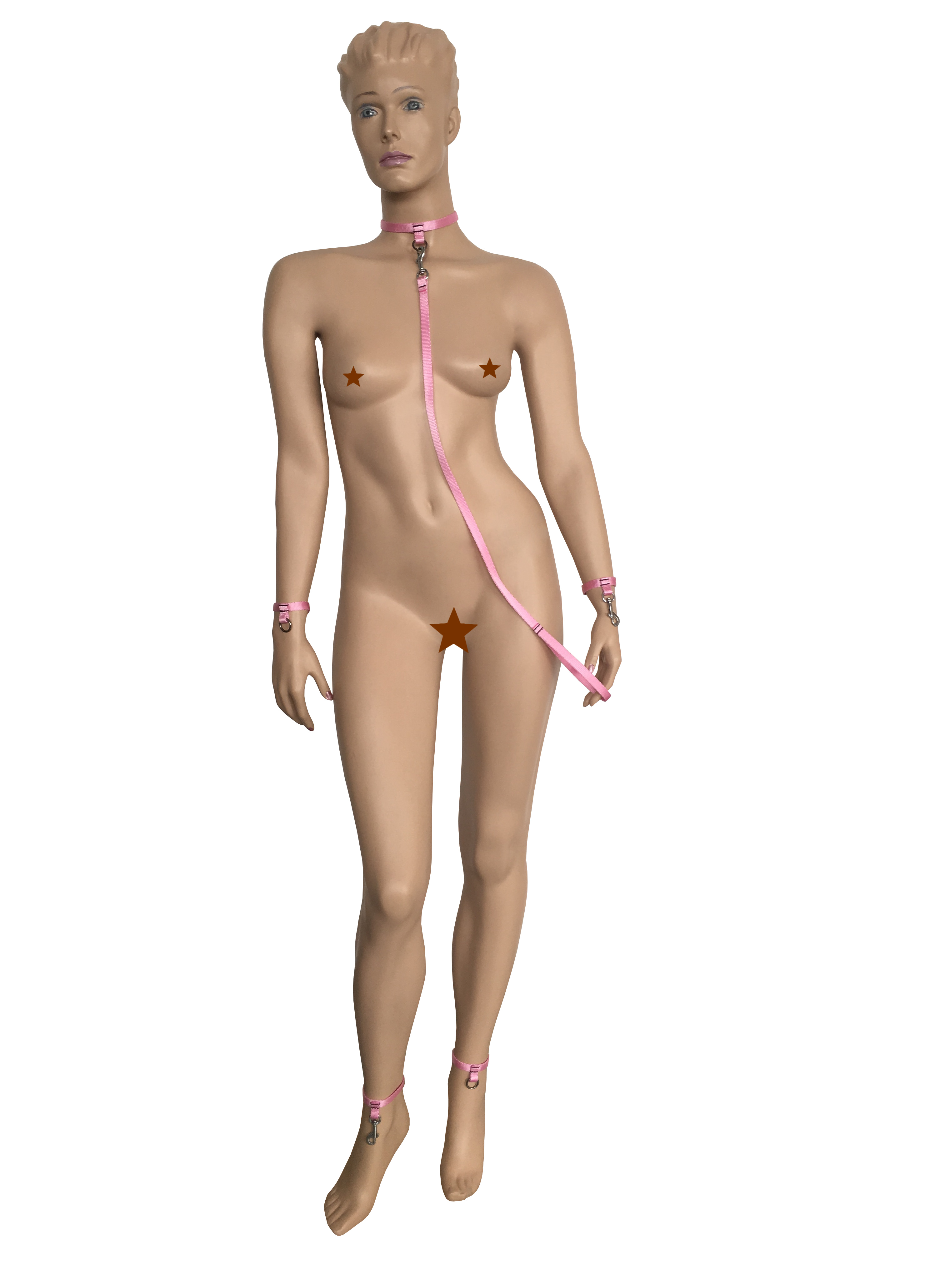 | Set bestehend aus Halsband, Hand, Fußfesseln und Leine. |