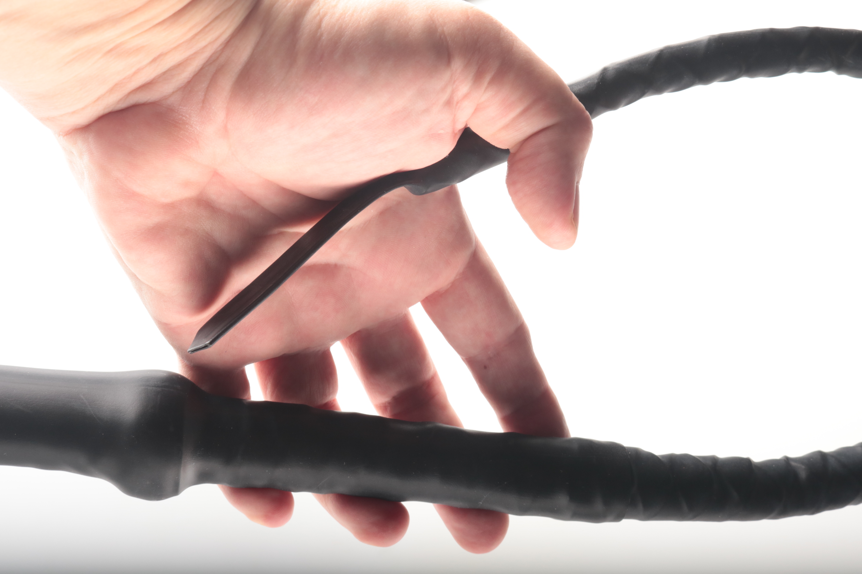 - Schwere Gummipeitsche mit Klatsche und mit einem Kern aus Leder und Hanf