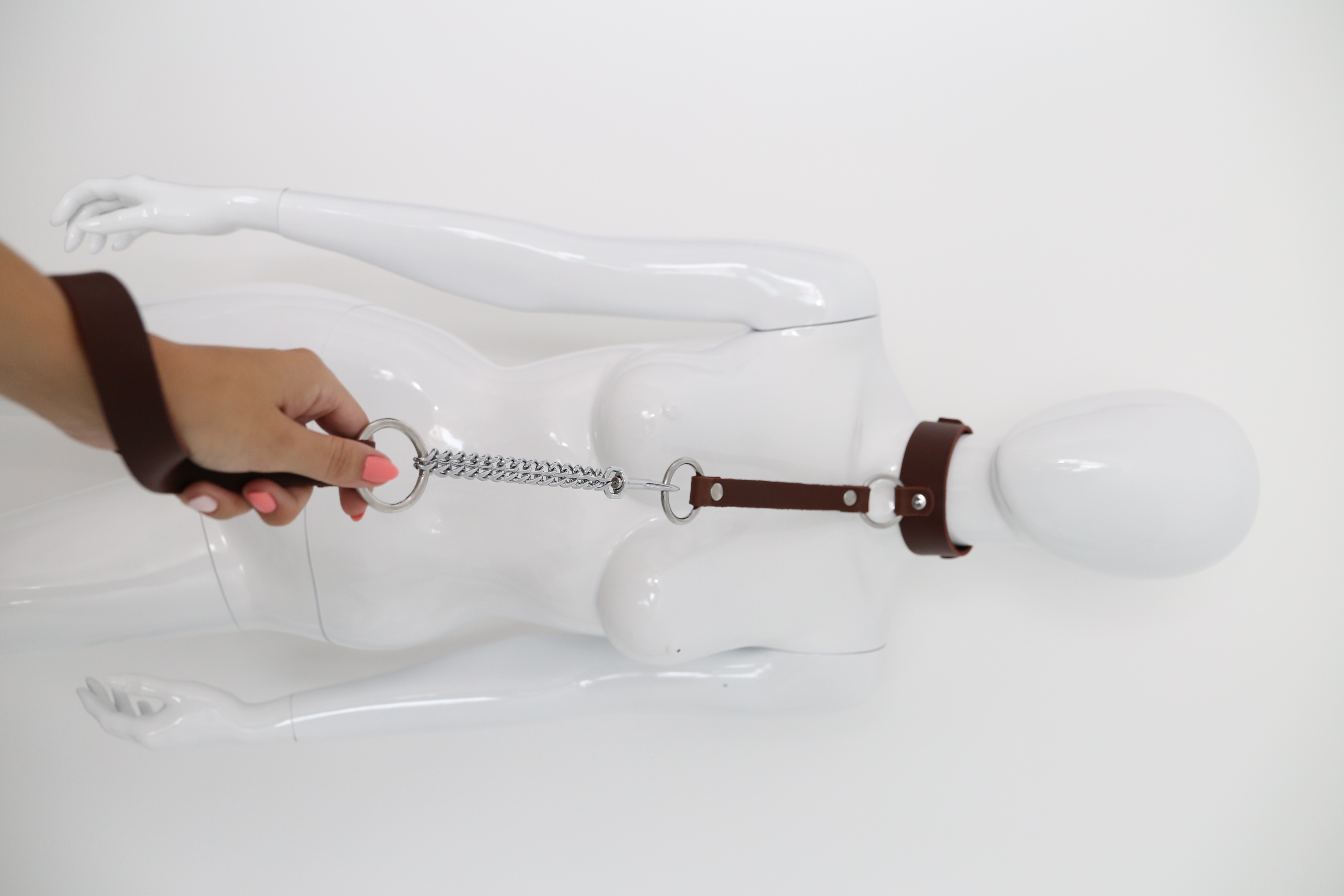 Halsband mit Kettenleine braun
