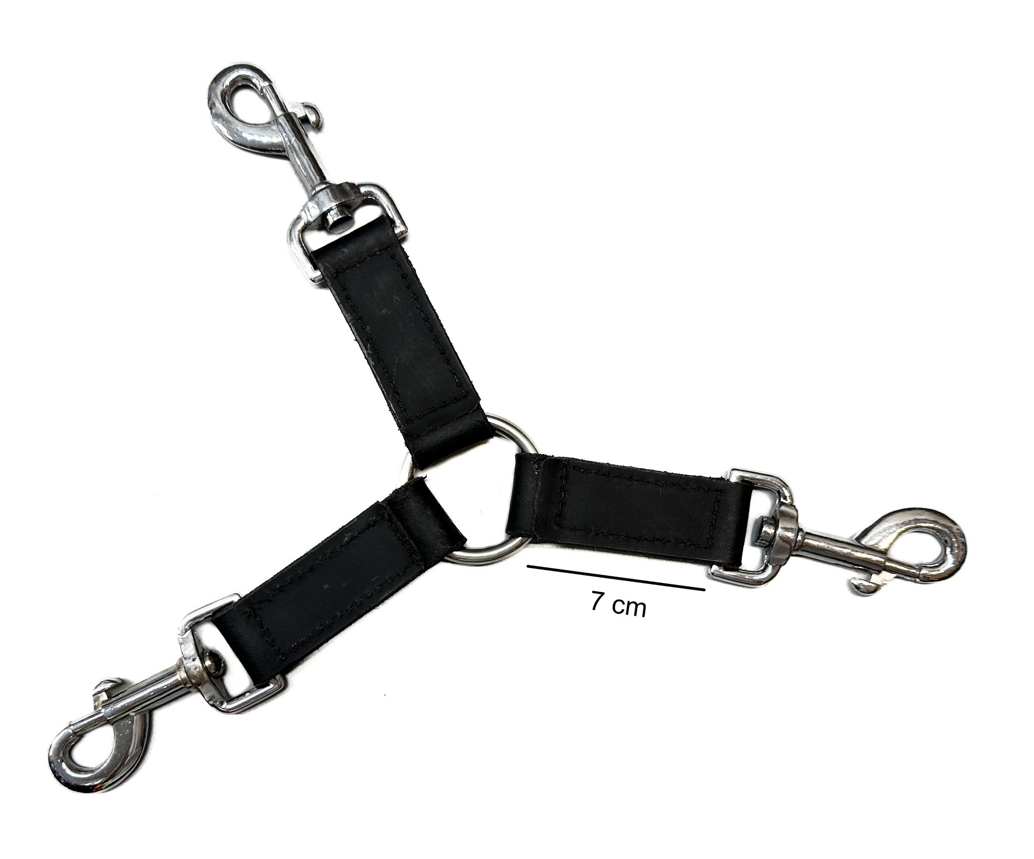 3 Karabiner an Ring mit Lederschlaufen...sehr nett!