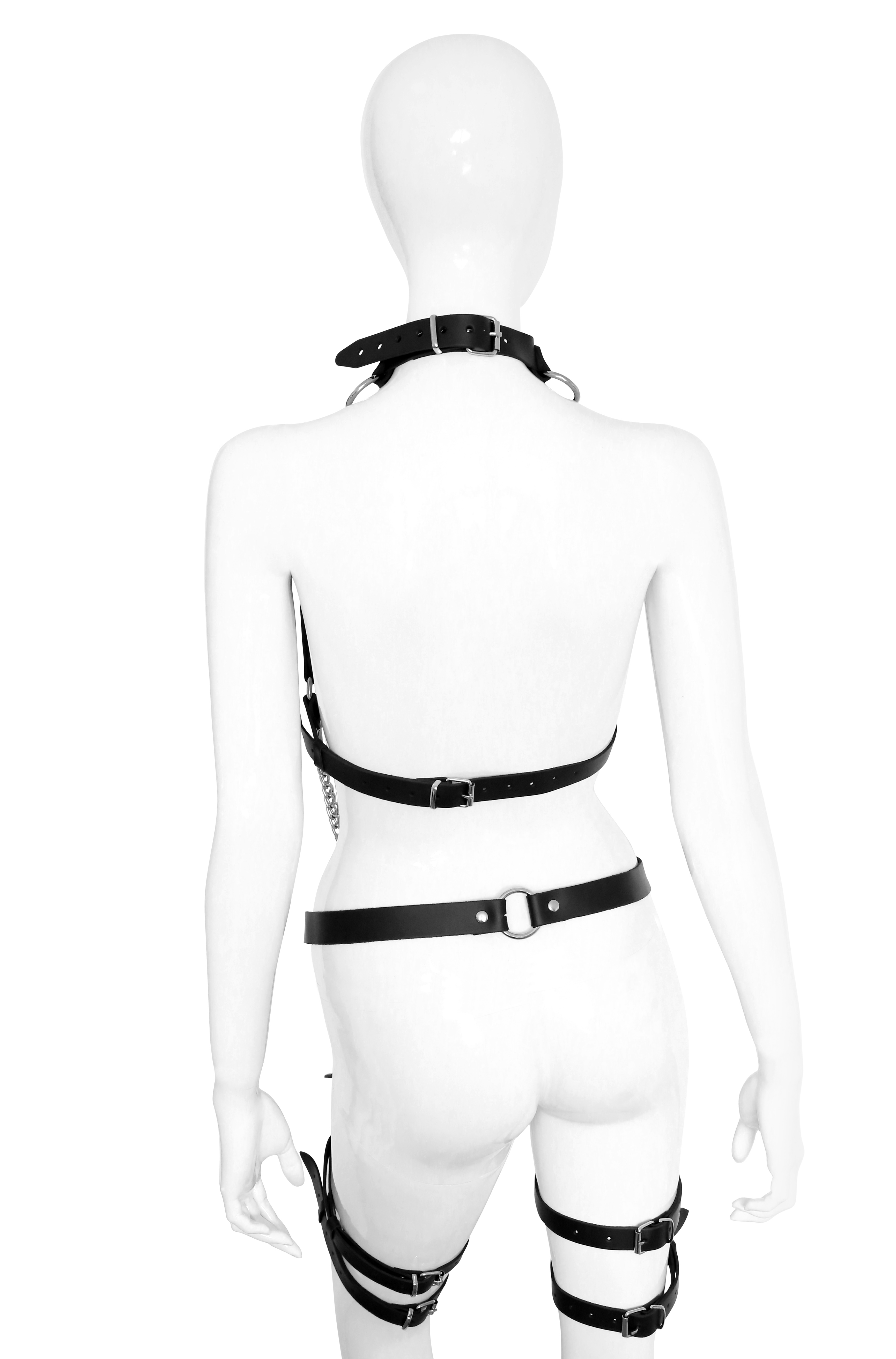 BH Set bestehend aus verstellbarem Leder und Ketten BH wie Hüftgurt mit Oberschenkelgurten