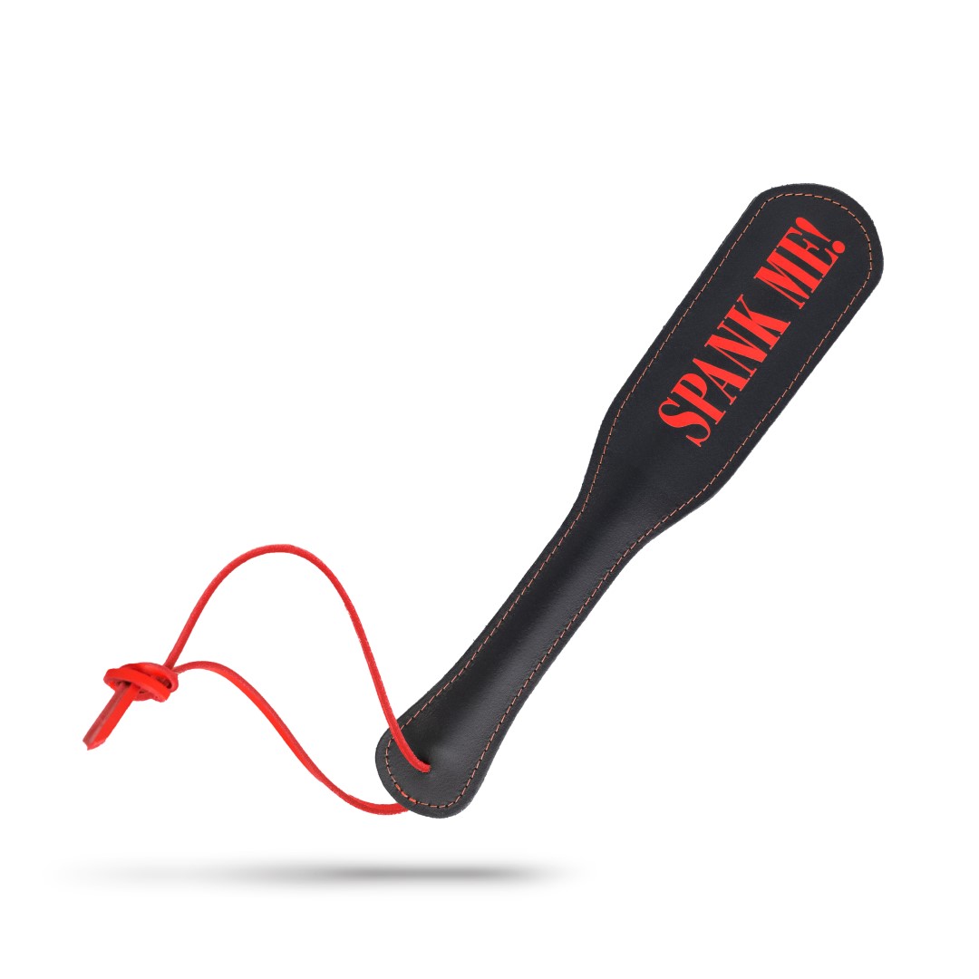Nehme unser Leder-SPANK ME! Paddel und gib ihm die Behandlung seines Lebens!