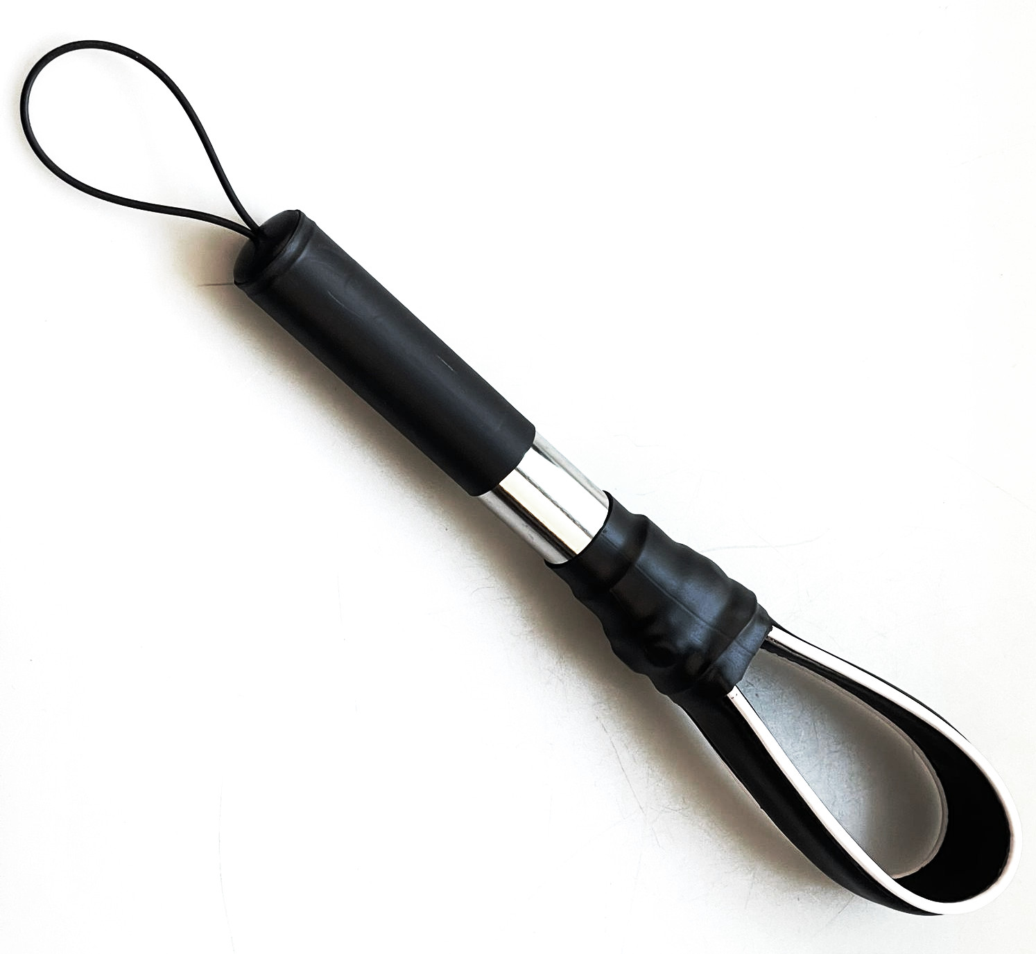 Produktinformationen "Leder-Paddle mit Metallgriff weisser Streifen"