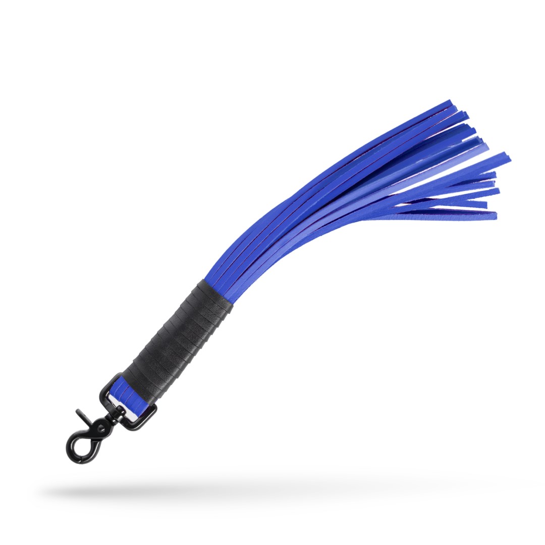 Lederpeitsche mit Karabiner Schwarz/Blau