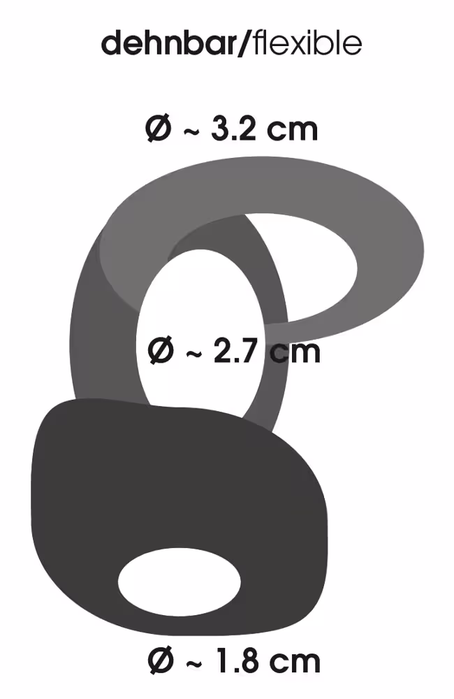 Ringe-Ø 3,2, 2,7 und 1,8 cm. In Länge und Ø sehr dehnbar.