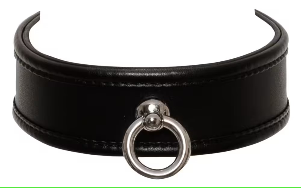 4 cm breite, hochwertig gearbeitete Halsfessel mit dekorativem Ring an kleinem Steg.